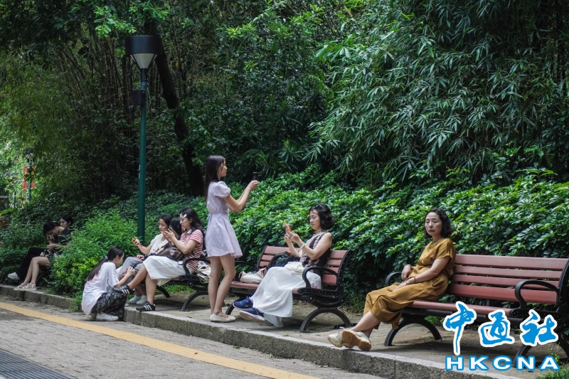7月23日,香港市區天氣炎熱。天文台發出酷熱天氣警告。圖為市民在公園消暑。(香港中通社記者 曹文毓攝) 香港中通社圖片