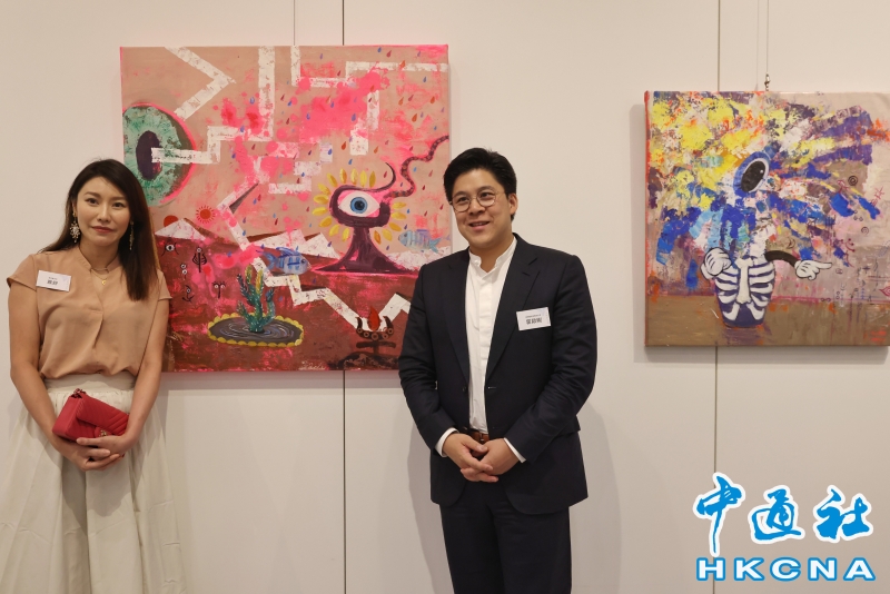 7月25日,由中國文學藝術界聯合會香港會員總會主辦、中國美術家協會香港會員分會協辦的《書寫的力量》展覽在香港中央圖書館舉行開幕典禮。展覽旨在體現中國書寫藝術在香港的最新發展,透過藝術家們“以書入畫”、“書畫融合”的創意創作,展現中華傳統書畫的筆墨、線條、章法、韻律、構圖、空間留白等技巧,並對傳統及當代書法藝術作出深入解構與反思。圖為香港立法會議員霍啟剛(右)參觀展覽。(香港中通社記者 謝光磊 攝) 香港中通社圖片