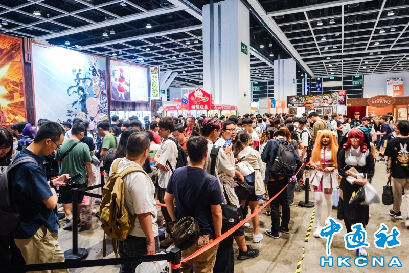 •   7月26日周末,第26屆香港動漫電玩節人山人海,大批漫迷入場逛展。第26屆香港動漫電玩節7月25日在香港會展中心開幕,今屆展覽面積較去年增近一倍至逾3.4萬平方米,共吸引約160家參展商及超過610位個人展商參與。(香港中通社記者 許其皓攝) 香港中通社圖片