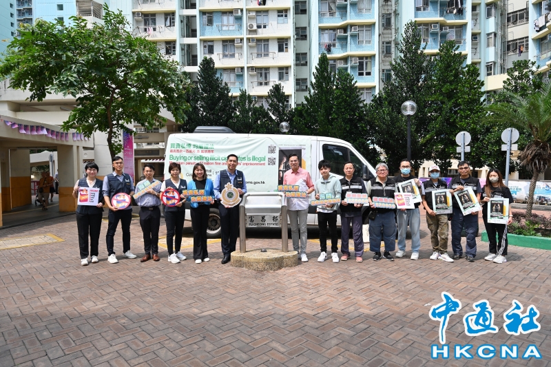 •   香港海關7月28日與立法會議員梁文廣、深水埗區區議員、衞生署控煙酒辦公室及房屋署在深水埗富昌邨進行聯合反私煙宣傳活動。 香港中通社圖片