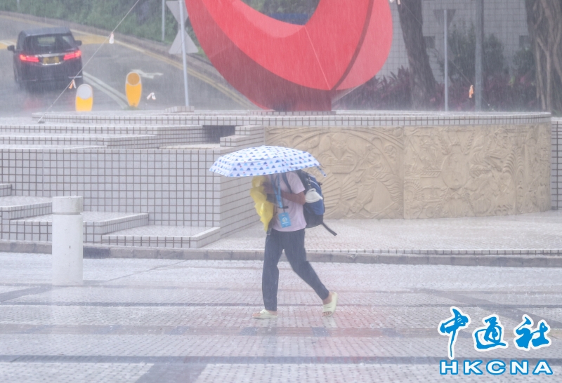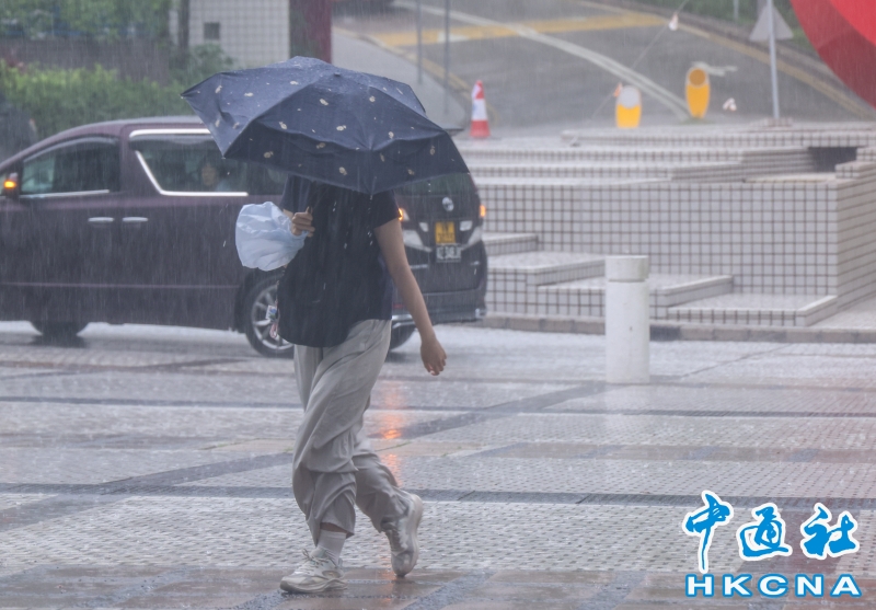 7月29日,香港天文台上午9時10分發出黑色暴雨警告信號,香港廣泛地區已錄得或預料會有每小時雨量超過70毫米的大雨,且雨勢可能持續。(香港中通社記者 曹文毓攝) 香港中通社圖片