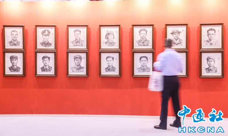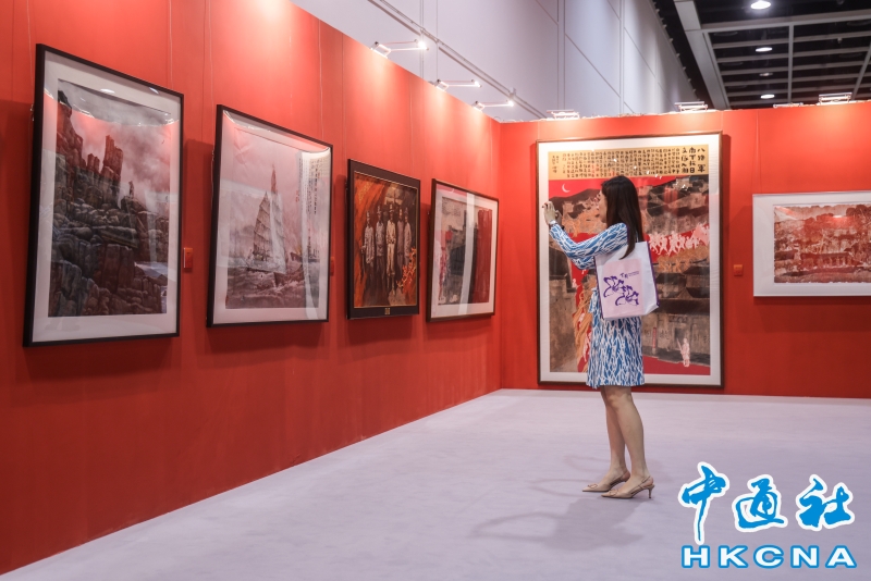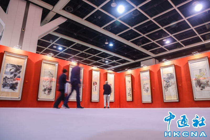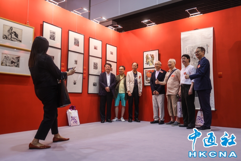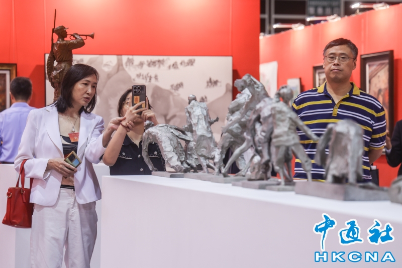 8月6日,“銘記歷史 珍愛和平——紀念中國人民抗日戰爭暨世界反法西斯戰爭勝利80周年名家名作展”在香港會展中心開幕。本次展覽,設置了銘記歷史、緬懷先烈、春回大地、江山永固、開天闢地、珍愛和平六個主題單元,展出了兩百多件藝術珍品,包括著名雕塑家吳為山創作的侵華日軍南京大屠殺遇難同胞紀念館組雕、著名畫家張仃創作的抗戰組畫、著名版畫家梁永泰創作的《戰鬥中的鐵騎》等。此外,還展出了齊白石、傅抱石、蔣兆和、李可染、李苦禪、葉淺予、何香凝、啓功、趙少昂等大師的精品力作。(香港中通社記者 曹文毓攝) 香港中通社圖片