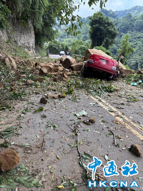 •   8月6日下午3點半左右,台灣苗栗縣泰安鄉苗62-1線道路發生落石坍方,一輛行經該處的紅色轎車遭巨石砸中,車內2人不幸身亡。 香港中通社圖片