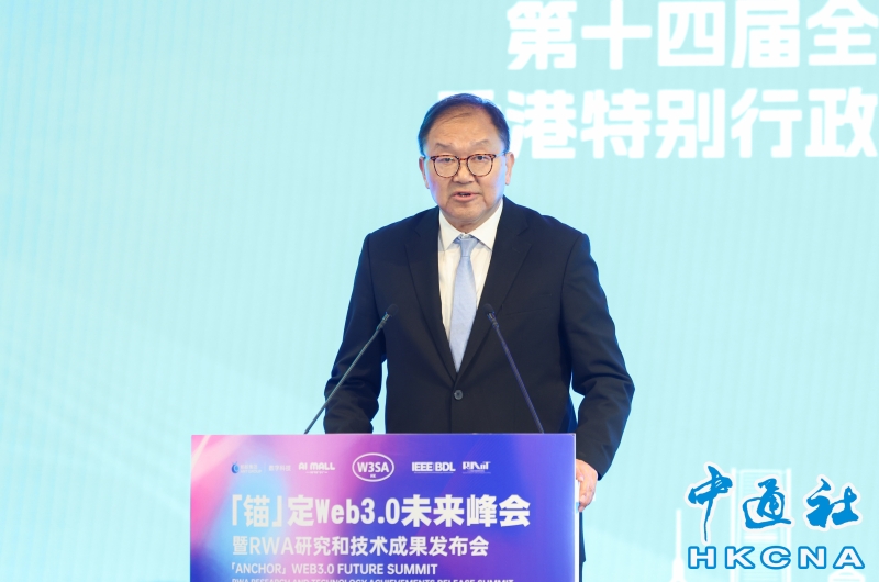 •   “錨”定Web3.0未來峰會7日在香港舉辦,會上同時舉行全球首個RWA注册登記平台上線儀式。實體資產(RWA) 指的是存在於非數位世界中的實體或有形資產,例如房地產、大宗商品、藝術品和智慧財產權等。圖為香港立法會議員黃錦輝致辭。(香港中通社記者 曹文毓攝) 香港中通社圖片