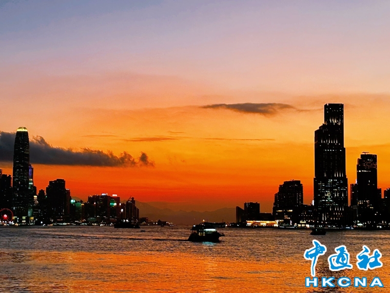 •   8月8日傍晚,香港維港晚霞絢麗多彩,美不勝收。香港中通社圖片