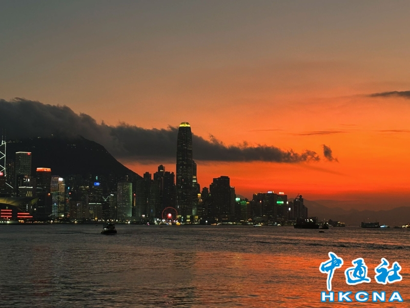 •   8月8日傍晚,香港維港晚霞絢麗多彩,美不勝收。 香港中通社圖片