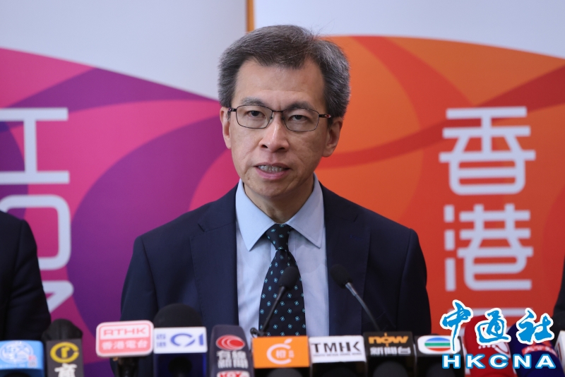 香港財經事務及庫務局常任秘書長黎志華見傳媒