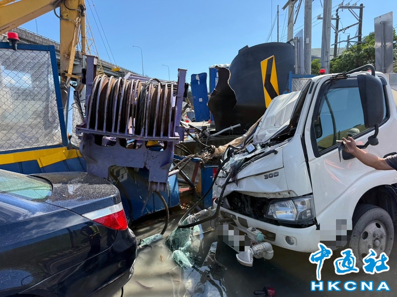 •   8月25日上午,台灣新北市五股區發生工業意外。捷運環狀線北環段中興路二段堤防旁工地內,一輛正在作業的吊車,忽然重心失衡,瞬間翻覆,巨大的吊臂壓毀附近車輛。 香港中通社圖片