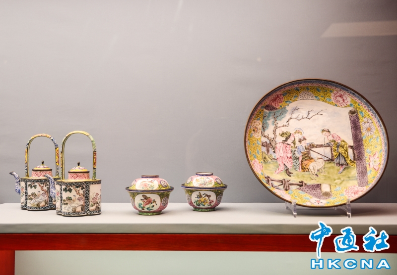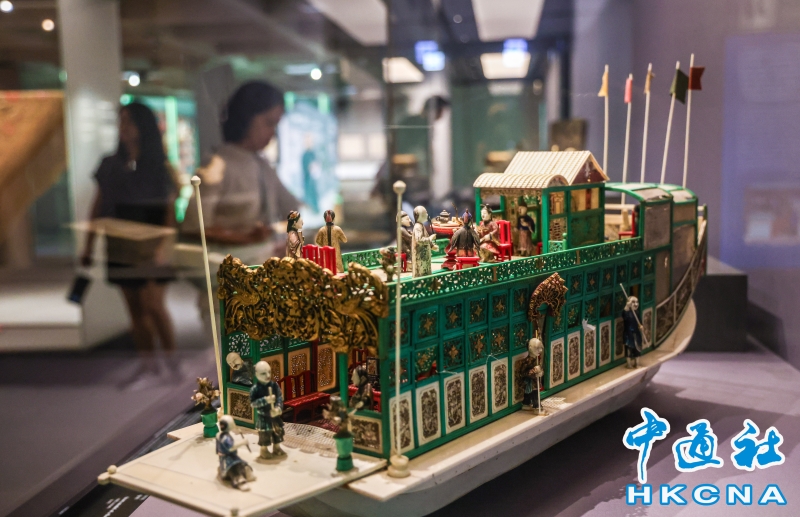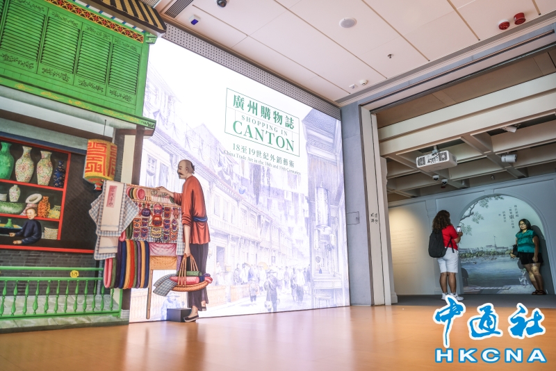 在18至19世紀期間,廣州是中西貿易的集中地。位於城外西南方珠江河畔的商館區內有多條繁盛的購物街,店舖林立,售賣各式手工藝珍玩、零售茶葉、土產、酒食等,以外國商人為目標顧客。近日,香港藝術館呈獻“廣州購物誌──18至19世紀外銷藝術”展覽,展示不同種類的外銷藝術藏品,呈現當時廣州購物天堂的風貌,還邀請本地動畫師崔氏兄弟製作動畫及互動投影,讓觀眾展開一段充滿藝術氣息的櫥窗購物之旅。(香港中通社記者 曹文毓攝) 香港中通社圖片