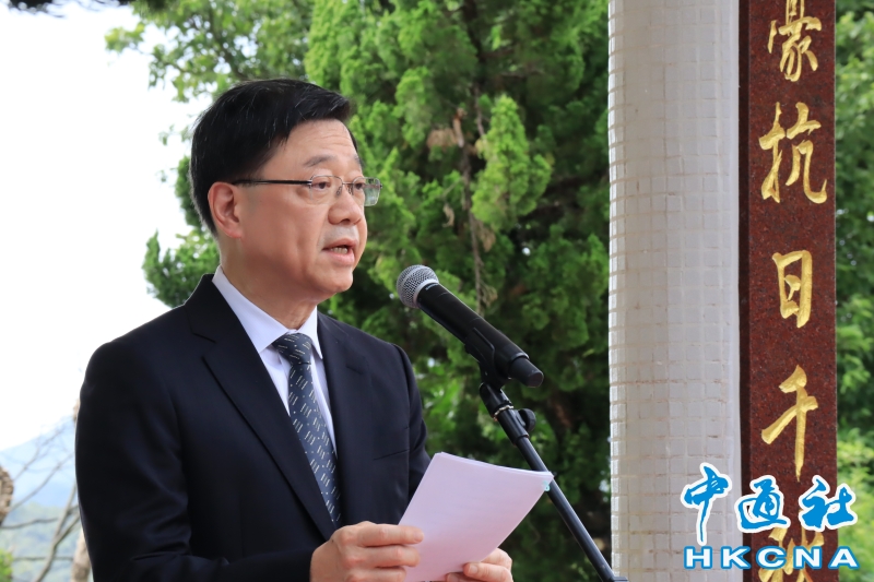 •   8月30日,中國人民抗日戰爭暨世界反法西斯戰爭勝利80周年斬竹灣抗日英烈紀念碑園典禮在香港舉行。圖為香港特區行政長官李家超致辭。(香港中通社記者 梁嘉軒攝) 香港中通社圖片