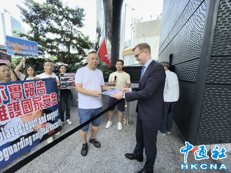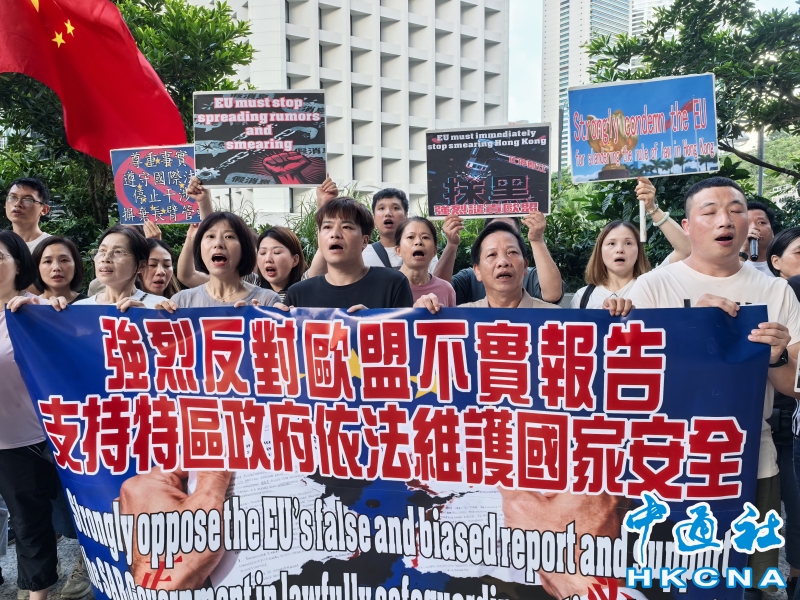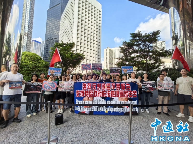 •   9月10日下午,一批香港市民到歐盟駐港辦事處示威。強烈抗議歐盟發表所謂年度報告詆譭抹黑香港特區。 香港中通社圖片