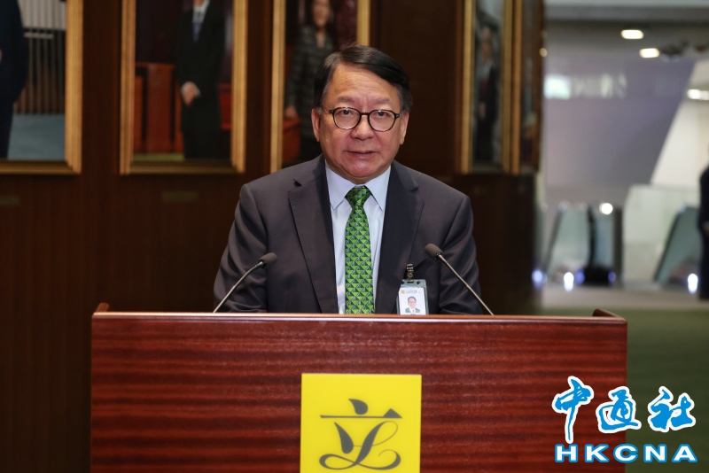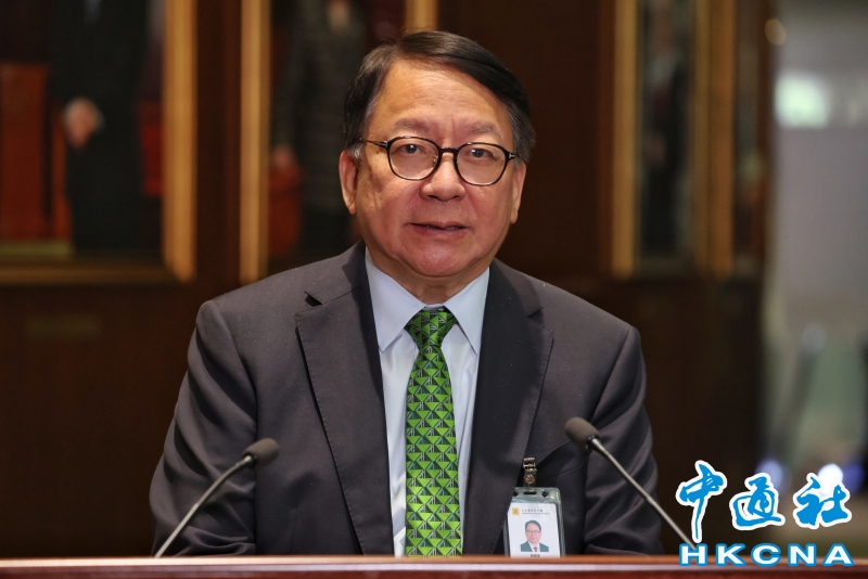 •   9月17日,香港特區行政長官李家超在立法會發表2025年施政報告,報告以綠色為封面顏色,主題是“深化改革 心繫民生 發揮優勢 同創未來”。圖為會議結束後,政務司司長陳國基會見傳媒。(香港中通社記者 謝光磊 攝) 香港中通社圖片