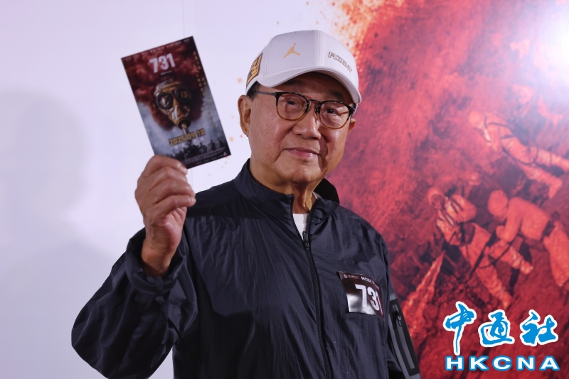 •   9月18日,香港藝人許冠文出席電影《731》香港首映禮。以侵華日軍第七三一部隊為題材的電影《731》在香港影藝戲院(JP)舉行首映禮,儀式特別選在晚上7時31分舉行,別具意義。(香港中通社記者 謝光磊 攝) 香港中通社圖片