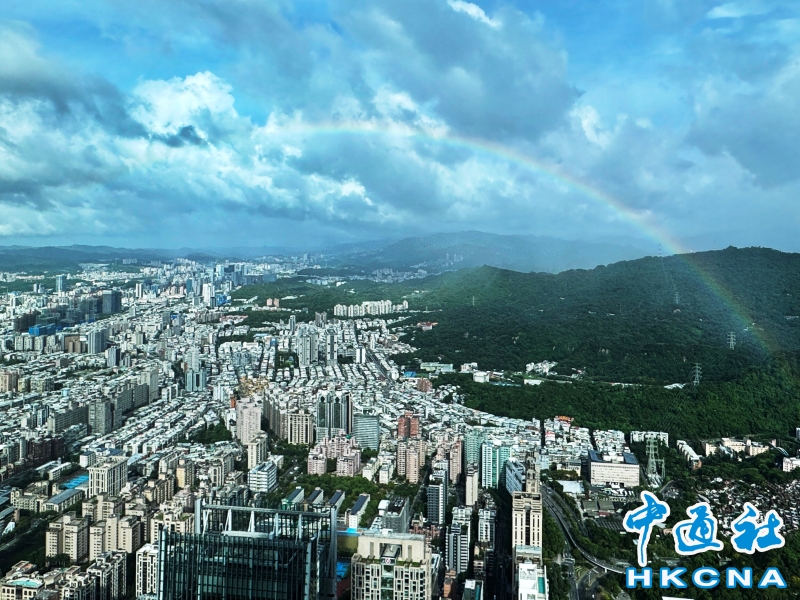 •   颱風“樺加沙”持續靠近台灣,外圍環流造成台北零星降雨,台北市天空雨後也出現彩虹。 香港中通社圖片