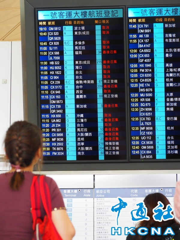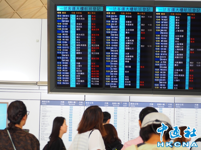 •   9月23日上午,香港國際機場大量航班取消,不少旅客滯留。當天,超強颱風“樺加沙”撲港,海陸空交通大受影響。(香港中通社記者洪少葵攝) 香港中通社圖片