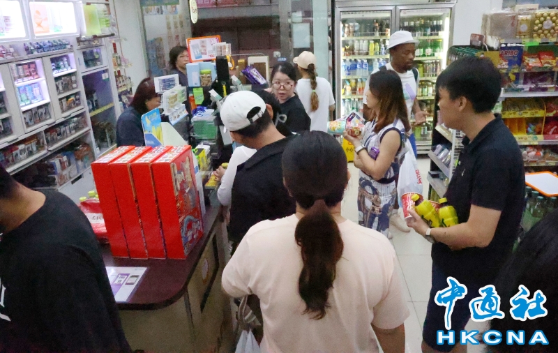 •   9月23日下午2點40分,香港轉發八號風球,大部分商店已關閉,尖沙咀一便利店內遊客排隊搶購食物和飲品。(香港中通社記者 徐文峰攝) 香港中通社圖片