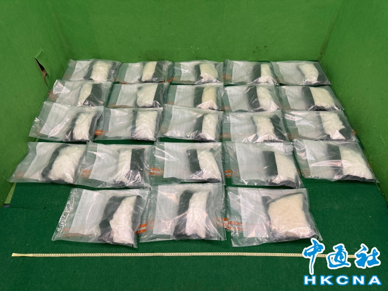 •   9月23日,香港海關在香港國際機場偵破一宗行李藏毒的販毒案件,檢獲約二十三公斤懷疑冰毒,市值約七百六十萬元。圖為檢獲的懷疑冰毒。 香港中通社圖片