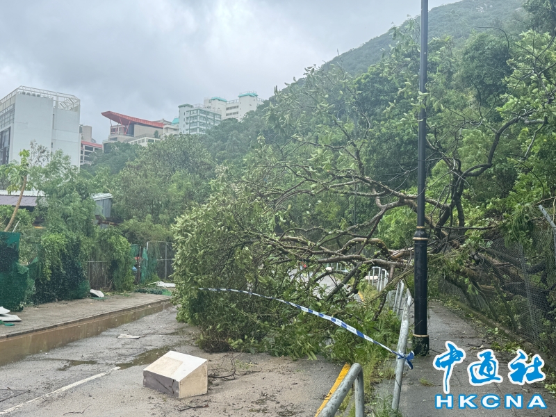 •   9月24日,香港八號東南烈風或暴風信號生效。天文台表示,超強颱風樺加沙已減弱為強颱風,隨後會視乎本地風力減弱程度,考慮改發三號強風信號。圖為在深灣道天氣仍然惡劣,有頻密狂風大驟雨及雷暴,樹木倒塌。 香港中通社圖片