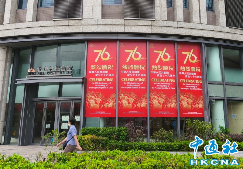 •   國慶節即將來臨,香港各區洋溢節日氣氛,北角社區會堂高掛橫幅慶祝中華人民共和國成立76週年。 香港中通社圖片