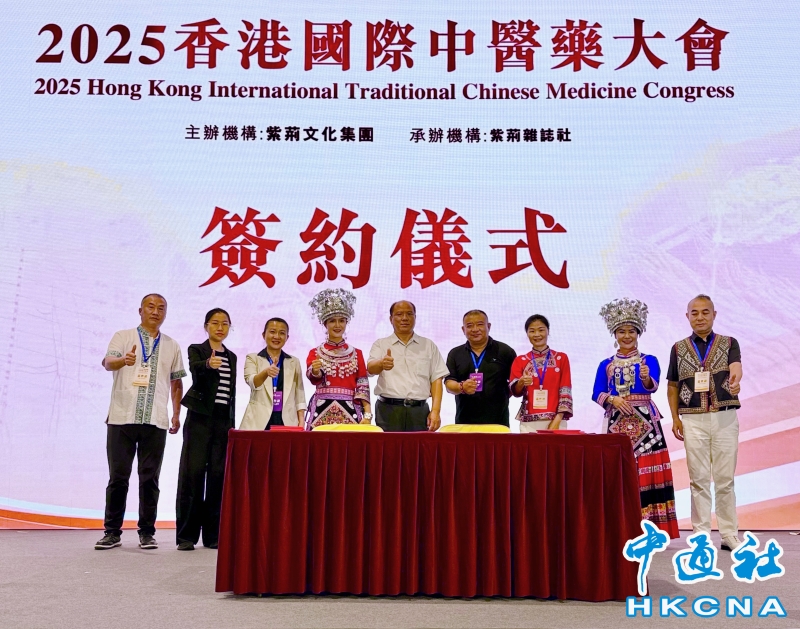 •   由紫荊文化集團主辦、紫荊雜誌社承辦的「2025香港國際中醫藥大會」近日在香港啟幕,湖南懷化侗藥苗藥集中亮相。澳門中華國醫學會與湖南省懷化市的四家企業——湖南農達健康產業、湖南省武陵艾業、新晃德懋生物、靖州國苓正式簽署戰略合作協議。湖南懷化是侗、苗族醫藥的發源地之一,侗、苗族醫藥更是少數民族醫藥的瑰寶,具有獨特文化價值。(主辦方 供圖) 香港中通社圖片