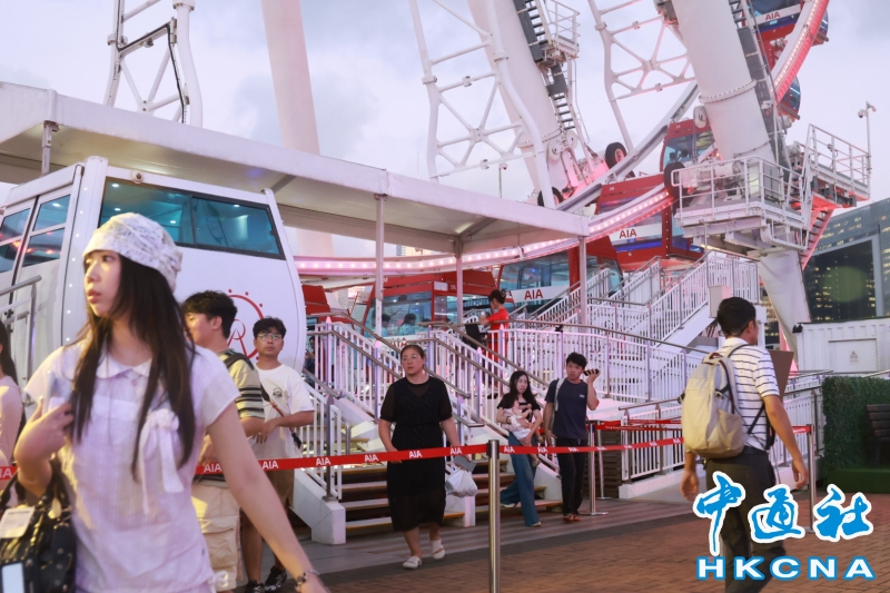 •   10月8日,內地國慶黃金周和中秋一連8日長假期進入尾聲,根據香港入境處數據,10月1日至7日共錄得約129.5萬人次內地客訪港,去年同期則有121.6萬人次內地客來港。換言之,今年黃金周訪港內地客人次打破去年紀錄。關於香港旅遊的競爭力,香港旅遊界人士及內地客均指出,來港旅遊有跨境感,且香港貨品多元,能買到內地沒有的牌子,同時在港買金等也較內地劃算。圖為遊客在中環乘搭摩天輪。(香港中通社 鄧子傑攝) 香港中通社圖片