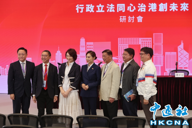 •   10月16日,香港特別行政區政府舉行“行政立法同心治港創未來”研討會,邀請愛國愛港團體、社會各界代表以及專家學者共同交流真知灼見,凝聚共識。圖為研討會結束後,參加研討會的嘉賓在會場合影。(香港中通社記者 謝光磊 攝) 香港中通社圖片