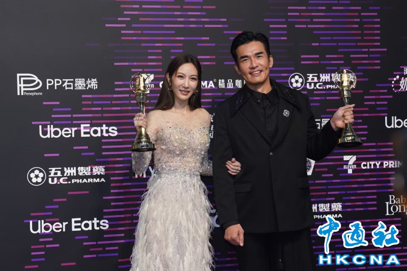 •   10月18日,第60屆戲劇類金鐘獎頒獎典禮在台北流行音樂中心盛大登場。圖為藝人楊一展、曾莞婷獲第60屆金鐘獎戲劇節目男女配角獎。 香港中通社圖片