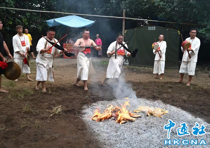 台灣新北市沙崙保安廟舉行過火、過刀橋活動分享到: