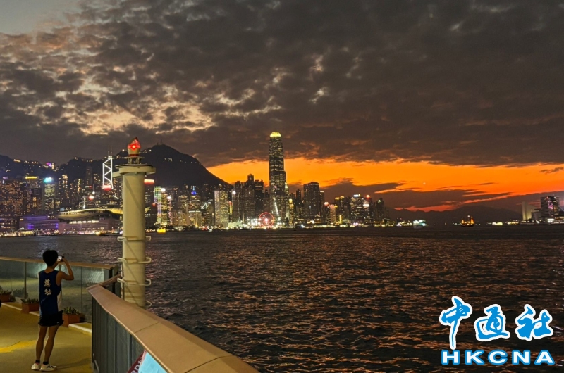 •   11月21日黃昏,晚霞映照維港兩岸。 天文台指,受幹燥的東北季候風持續影響,周末至下周初廣東天色大致良好,日間溫暖,日夜溫差頗大。 預料季候風補充會在星期一晚上至星期二初時抵達華南沿岸,隨後兩三日該區早晚清涼,日間非常幹燥。(洪紫萱攝) 香港中通社圖片