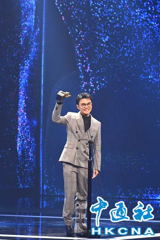 •   2025第62屆金馬獎頒獎典禮11月22日於台北流行音樂中心登場。圖為潘客印以電影《我家的事》獲第62屆金馬獎最佳改編劇本。 香港中通社圖片