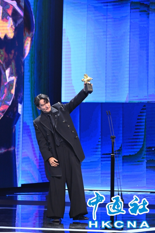 •   2025第62屆金馬獎頒獎典禮11月22日於台北流行音樂中心登場。圖為張震以電影《幸福之路》獲第62屆金馬獎最佳男主角獎。 香港中通社圖片