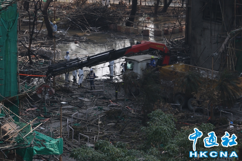 •   12月5日,香港警方繼續在火災現場善後。大埔宏福苑大廈內部階段性搜索工作已經完成,大廈外的搜索工作展開。(香港中通社記者鄧梓傑攝影) 香港中通社圖片