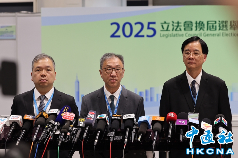 •   12月7日,香港特區立法會換屆選舉投票日。當天傍晚選舉管理會主席陸啟康法官(中)、石丹理教授(右)和文本立資深大律師(左)在會展中心五樓新聞中心會見傳媒。(香港中通社記者 鄧梓傑) 香港中通社圖片