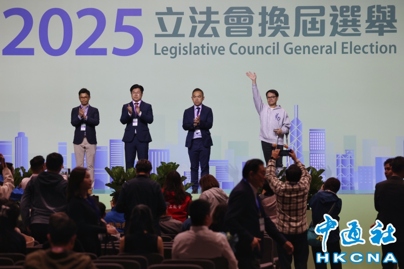 •   12月8日,2025年香港立法會換屆選舉地方選區新界東北公佈結果,1號候選人陳克勤、2號候選人李梓敬成功當選。(香港中通社記者  謝光磊 攝) 香港中通社圖片