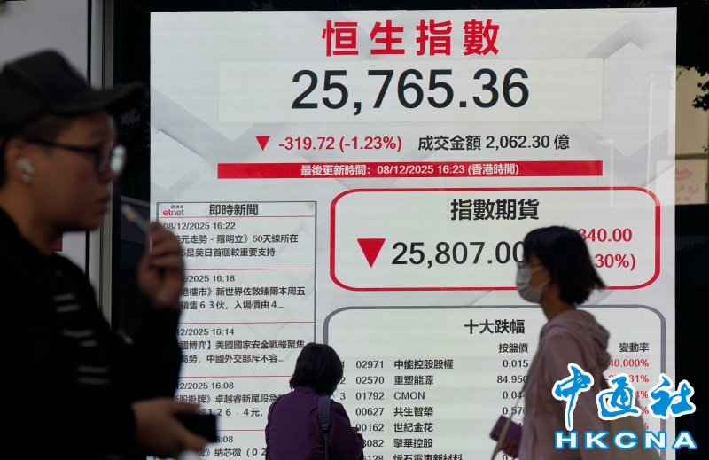 香港恒生指數跌319.72點 報25765.36點分享到: