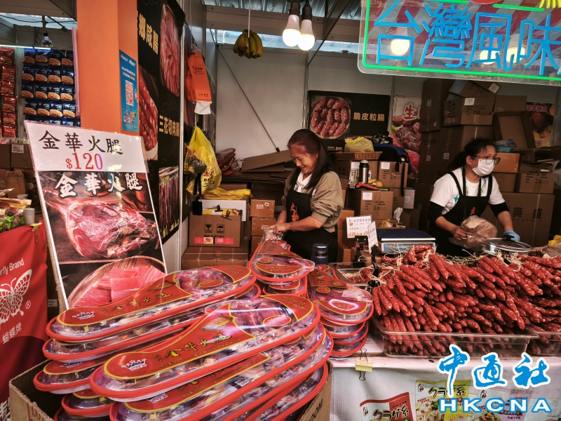 •   12月25日,聖誕節當天,香港維園工展會上人群湧動,人山人海。大批市民和訪港遊客到場選購心儀產品,迎接聖誕及新年。圖為台灣風味的腌制品、金華火腿等產品深受市民喜愛。 香港中通社圖片