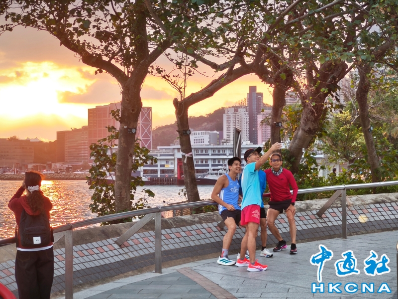 •   1月1日清晨,市民在香港東區海濱迎接第一缕晨光。 香港中通社圖片