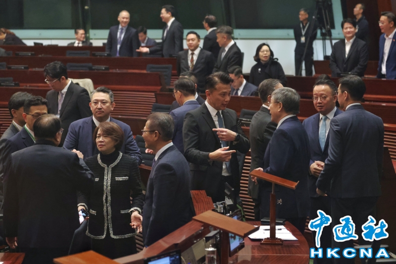 •   1月14日,香港第八屆立法會首次會議上午舉行,議程聚焦大埔宏福苑災後支援及重建工作。圖為議員在會議開始前交流。(香港中通社記者  謝光磊 攝) 香港中通社圖片
