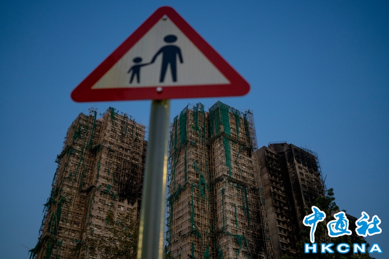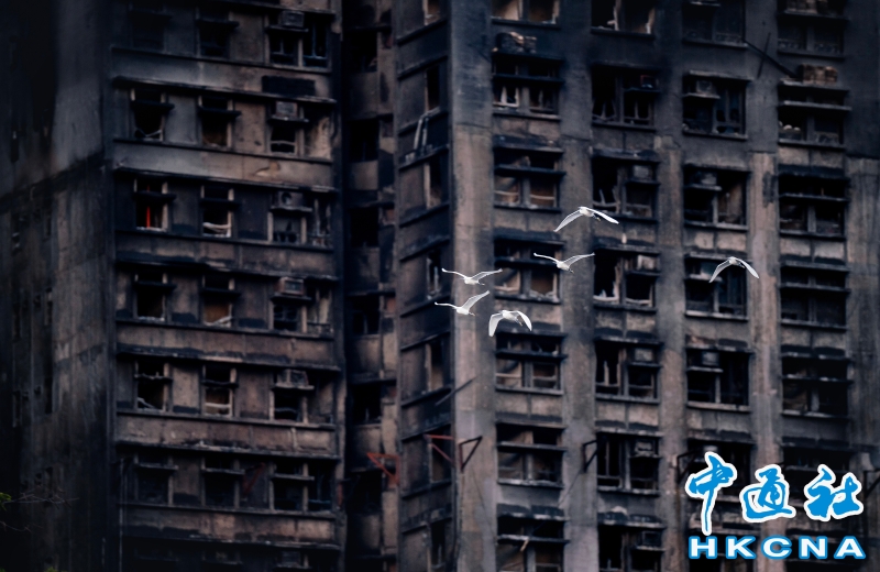 1月14日,香港第八屆立法會首次會議舉行,議程聚焦大埔宏福苑災後支援及重建工作。圖為災後的大埔宏福苑。(香港中通社記者 陳奕啟 攝) 香港中通社圖片