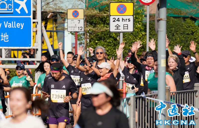 •   香港渣打馬拉松2026在1月18日舉行,一頭濃密銀髮的影星周潤發今年回歸10公里賽事,在跑道上邊跑邊與觀眾揮手。(香港中通社記者 陳奕啟 攝) 香港中通社圖片