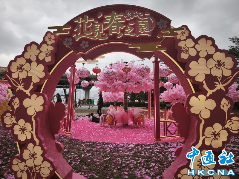 •   1月20日,農曆新年將近,香港迎春裝飾陸續登場。北角海濱一處商場外正佈置迎春裝飾,桃花盛開喜迎農曆新年,營造熱鬧氣氛。 香港中通社圖片