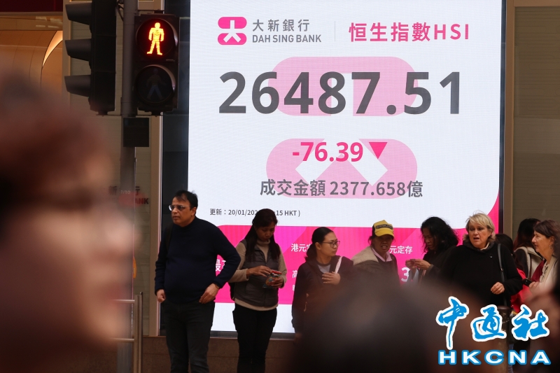 •   1月20日,截至收盤,香港恆生指數跌76.39點,跌幅0.29%,報26487.51點,主板全天成交2377.66億港元。(香港中通社記者 鄧梓傑 攝) 香港中通社圖片