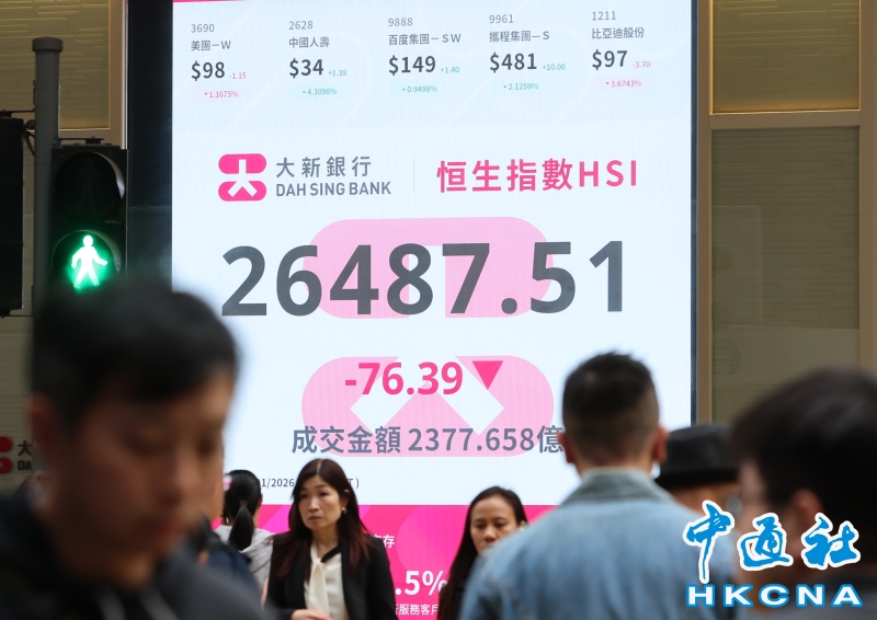 •   1月20日,截至收盤,香港恆生指數跌76.39點,跌幅0.29%,報26487.51點,主板全天成交2377.66億港元。(香港中通社記者 鄧梓傑 攝) 香港中通社圖片