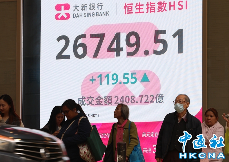 香港恆生指數漲119.55點 報26749.51點收盤分享到: