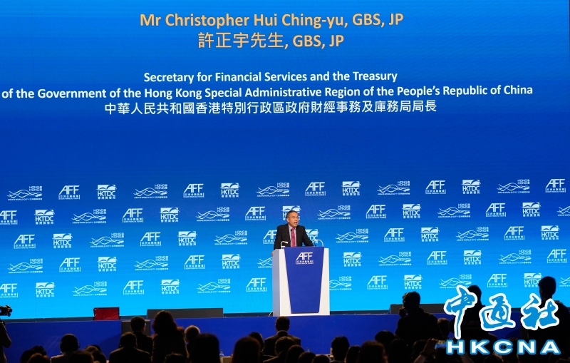 •   1月26日,第十九屆亞洲金融論壇在香港會展展覽中心舉行。香港財經事務及庫務局局長許正宇致辭。(香港中通社記者 陳奕啟攝) 香港中通社圖片
