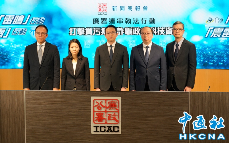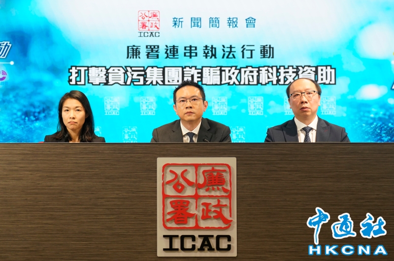 •   1月30日,香港廉政公署舉行新聞簡報會,交代近日兩項大型執法行動,打擊以貪污及欺詐手段詐騙政府科技資助的個案,拘33人 ,涉及金額逾1.5億港元。(香港中通社記者 陳奕啟 攝) 香港中通社圖片