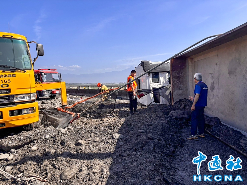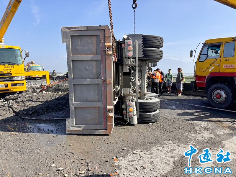 台灣砂石車翻覆 北上車道回堵分享到: