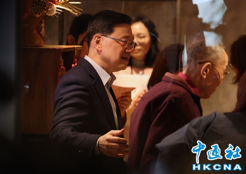•   臨近春節,香港特區行政長官李家超13日進行歲晚落區家訪活動,在油麻地駿發花園探訪住戶,亦到社區服務中心探訪長者。當天結束探訪後,李家超見記者時透露,當日早上到啟德青年驛站探訪兩戶受大埔宏福苑大火影響的年長居民,當局已要求工作組春節期間也持續工作,馬不停蹄地研究符合居民訴求的方案。(香港中通社記者 鄧梓傑 攝) 香港中通社圖片