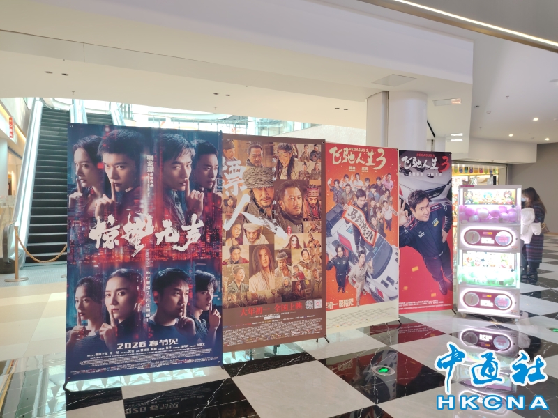 •   2026年中國內地春節假期被大眾稱為“最長春節假期”,從臘月二十八(2月15日)到正月初七(2月23日)共9天,其間中國電影院線也迎來“最長春節檔”。作為全年之中電影出品方和觀眾普遍最為重視的檔期,今年春節檔上新張藝謀導演新片《驚蟄無聲》、重磅武俠IP《鏢人:風起大漠》、韓寒《飛馳人生》系列的第三部等,亮點不少。圖為2026年春節假期,江蘇南京一家電影院的海報陳列。(香港中通社記者 吳一帆 攝) 香港中通社圖片