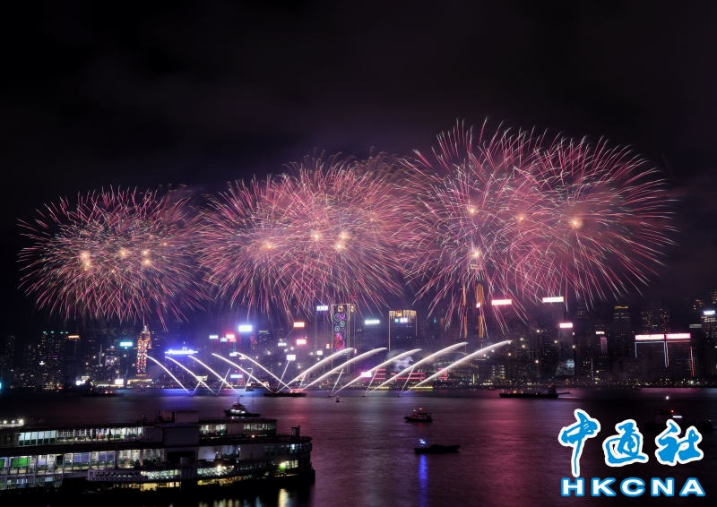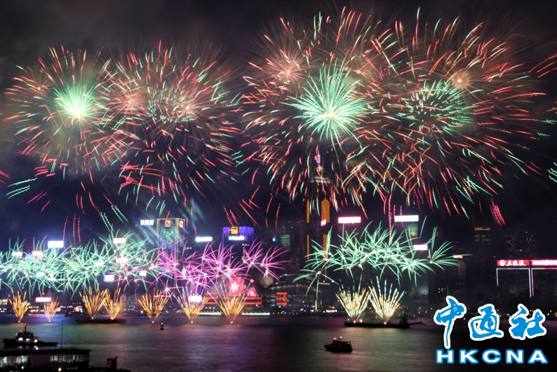 •   2月18日,香港農歷新年煙花匯演在維多利亞港上空如期舉行。匯演以“馬到功成耀香江”為主題,歷時約23分鐘,共燃放31888枚禮花彈,寓意迎接馬年新春,祝願市民心想事成。圖為維港上空舉行農曆新年煙花匯演。(香港中通社記者 鄧梓傑 攝) 香港中通社圖片